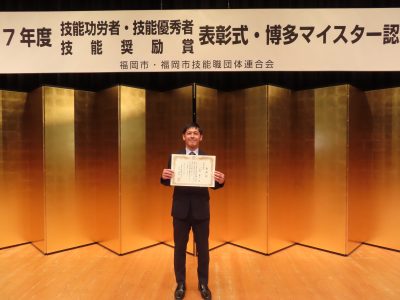 福岡市技能功労者に古賀宏之氏、福岡市技能奨励賞に荒木大介氏が表彰されました